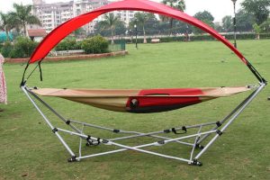 Great pleasure for outdoor activity , easily foldable , supplied with a carry bag with tow wheels , sturdy design to carry weight up to 120 kg , compact easily portable product , attractive look , sleeping area provided with mesh fabric for better air ventilation,materials used :frame : powder coated mild steel round tubular structure , pipes cross section : 35 mm , 25 mm ,fabric : 900d canvass with integrated mesh fabric , polyester sun shed , 8.5 mm d – f.g.poles for sun shed ,dimensions :sleeping area : 270 x 96 Cm, sleeping height – 65 Cm ,overall dimensions : 290 Cm length,177 Cm,height ,weight : 19 Kg.