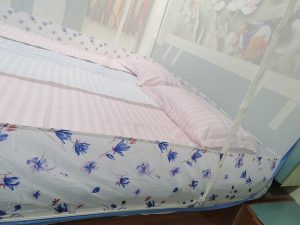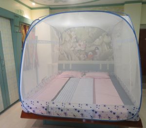 This range offers ultimate protection against mosquitoes and dirt in outdoor and other such locations. It is well-tested on several quality parameters.  ,folding and self standing ,auto pop-up type opening ,folds and unfolds very easily in seconds ,very light weight- approx. 2.5 Kg. ,super finished ,easily portable for outdoor use ,well air ventilated ,sufficient height to provide spacious roomy feel ,guaranteed for breakage of frame ,very stable to stand upright in balanced condition ,large opening 3 gates with every size of mosquito nets ,longer life ,user friendly design ,proven quality by more than 25000 satisfied users in India. Supplied with a zipper carry bag. Our sizes are suitable to almost every size of beds. Easy to wash. Available  size :.,180x220x165 Cm.. Guarantee : The product is absolutely guaranteed for breakage of frame for 1 year from the date of sell
