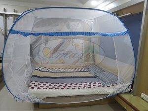 This range offers ultimate protection against mosquitoes and dirt in outdoor and other such locations. It is well-tested on several quality parameters.  ,folding and self standing ,auto pop-up type opening ,folds and unfolds very easily in seconds ,very light weight- approx. 2.5 Kg. ,super finished ,easily portable for outdoor use ,well air ventilated ,sufficient height to provide spacious roomy feel ,guaranteed for breakage of frame ,very stable to stand upright in balanced condition ,large opening 3 gates with every size of mosquito nets ,longer life ,user friendly design ,proven quality by more than 25000 satisfied users in India. Supplied with a zipper carry bag. Our sizes are suitable to almost every size of beds. Easy to wash. Available  size :.,210x200x165 Cm.. Guarantee : The product is absolutely guaranteed for breakage of frame for 1 year from the date of sell