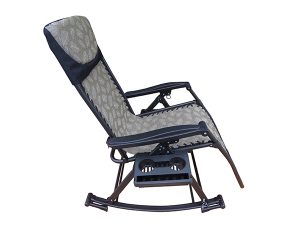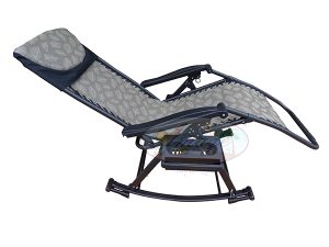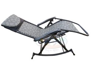 Folding Gravity Reclining Rocking chair is the most comfortable and elegant chair ever designed in its class and cost which provides the perfect body posture and support in every position to the user. It is the value for money product. It is also considered to be the most efficient tool for long sound sleep. It is proved to be the most popular chair for T.V. Viewing, Home Theater, Reading and Relaxing at beaches,camping,lounge, outdoor etc.. It is the most suitable and perfect foe relaxing for old age people, people with arthritic knee problems as well as people with heavy weight. Key Features : Fully folded into very small volume Occupies small space after folding Provides perfect rocking movement in both directions Very easy and smooth in reclining to provide perfect sleeping posture Supports full body from head to foots Can be locked at any position while reclining using a secured locking mechanisms provided on both sides under arms Rocking movement can be blocked by rotating and locking 4 bottom lever stoppers to convert into fix recliner chair Washable fabric Materials Used :: Frame : Powder coated round tubular M.S. frame Connectors : Injection moulded plastic Fabric : Textylene Dimensions : Open : 88 x 69 x 117 Cm Height Closed : 70 x 25 x 111 Cm Height Weight : 14 KgFree and comfortable rocking/oscillating motion. Provided with easily detachable side tray with recessed cellphone holder and drink holder made of plastic