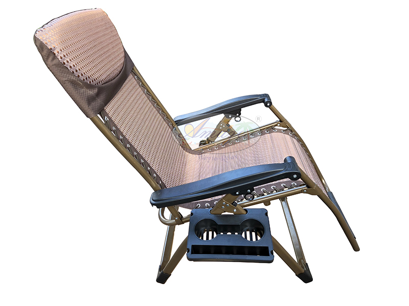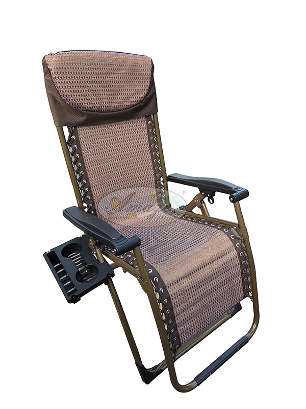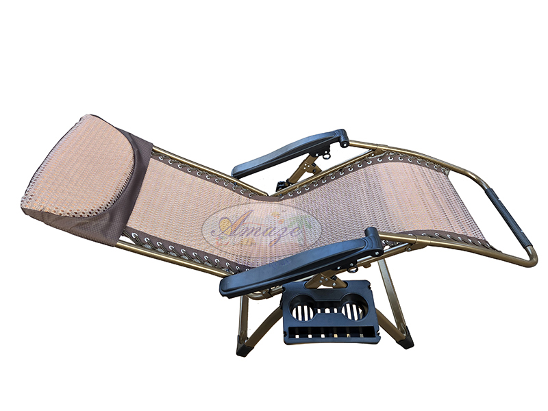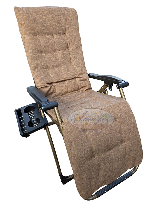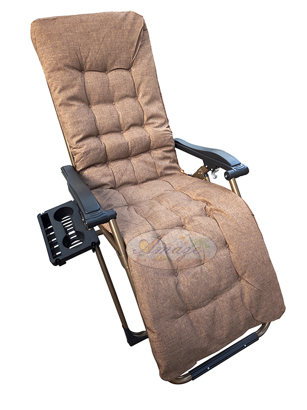 Folding Zero Gravity Easy Push Back Relax Swimming Pool Beach Lounger Recliner Chair- 12C Brown-CUSHION (with Cup Holder Tray)