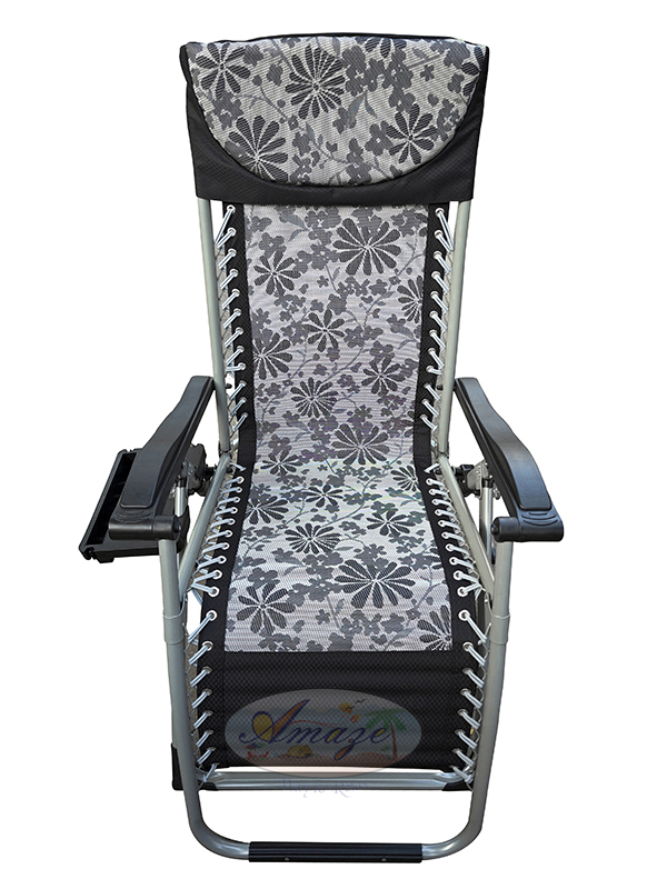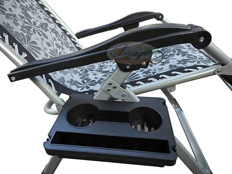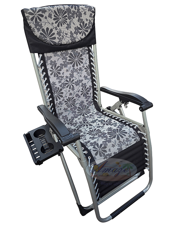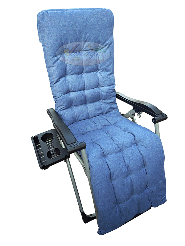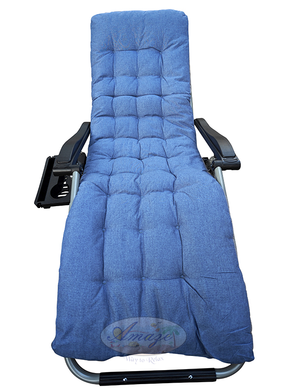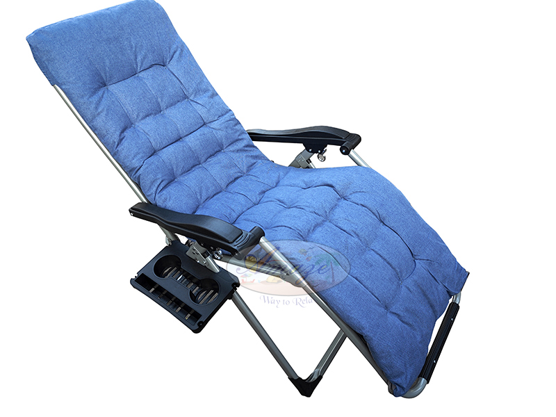 Folding Zero Gravity Easy Push Back Relax Swimming Pool Beach Lounger Recliner Chair-68B Grey-Blue Cushion (with Cup Holder Tray)