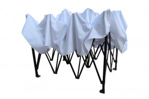 MATERIALS USED : Frame : made of square tubular powder coated mild steel section. Roof :  made of 900D P U coated polyester fabric.
