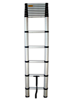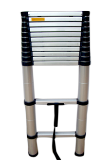 - Telescopic Ladder is the state of the art technology with compact and robust design which can very well be conveniently carried and used for indoor and outdoor purposes because of its unique feature of easy portability. This ladder enables to make its use in an optimum way by opening it to the extent required. Materials Used :Main frame : Aluminum alloy metal Holding Grips & Release Buttons : Moulded Plastic Key Features :